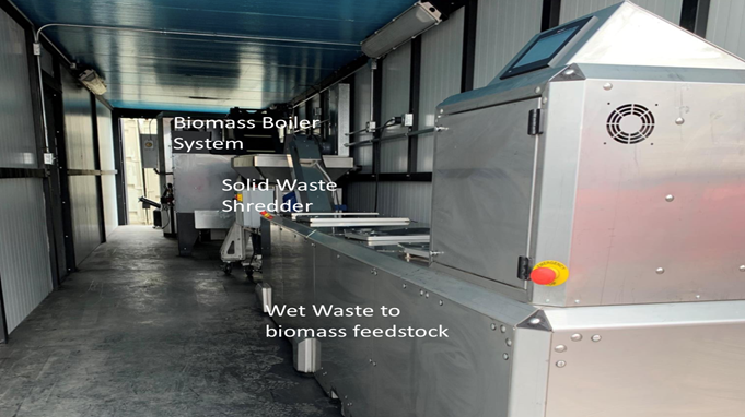 For those with high moisture content in their waste, we also have food and yard waste dehydrators, the small restaurant-sized model ‘EGOR 218’ (Eco-Growth Organic Reactor 218) can handle 200+ pounds of food waste per day (including bones), yard waste, and paper products – anything organic. Organic waste is dehydrated 80% on average with an on-site conversion from organic waste to biomass fuel and is turned into an odour-free, pathogen-free biomass material, which is then automatically fed into the biomass boiler or can be packaged and sold as either an organic soil-repairing fertilizer or for use in wood burning stoves – this organic biofuel has a higher BTU value than wood.