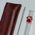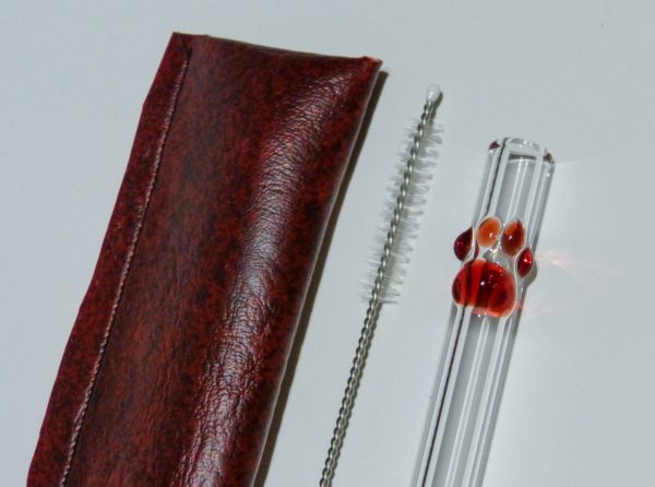 An 8″ Clear Borosilicate Glass Drinking Straw gift pack comes with straw, cleaning brush and carrying case.