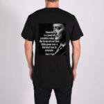 The back of this shirt has an image of one of the greatest Canadians to have ever lived – Manly P Hall.